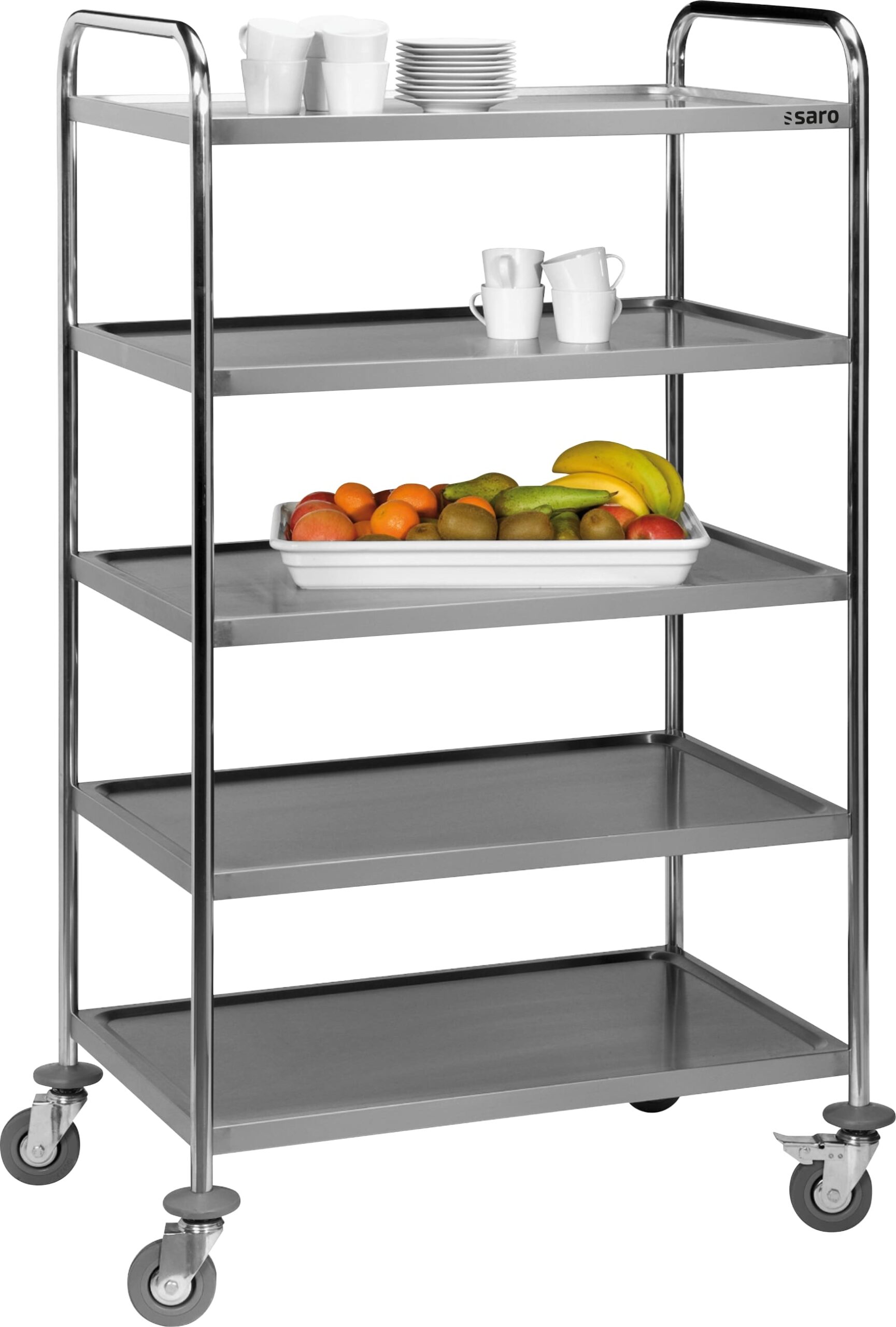 DAVID transportvognen kombinerer professionel funktionalitet med raffineret elegance. Denne alsidige serveringsløsning er fremstillet af førsteklasses rustfrit stål og har en robust konstruktion, der kan bære op til 130 kg på tværs af fem generøst fordelt