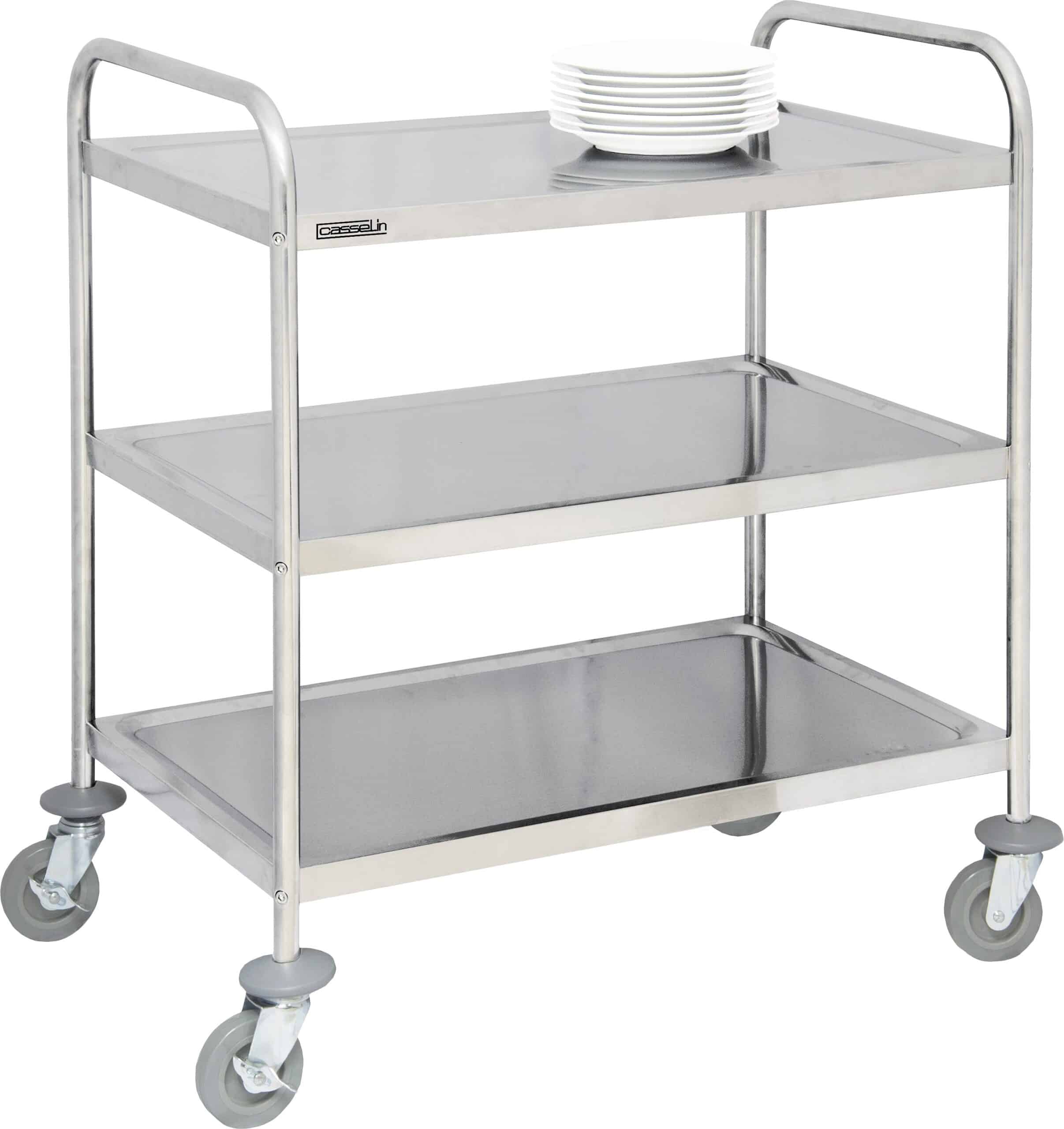 – Rustfrit stål- 4 retningsbestemte hjul, heraf 2 med bremse- Nyttelast: 120 Kg- Mål på platformene: L 830 x D 510 mm- Nyttige mål på platformene: L 755 x D 735 mm- Afstand mellem platformene: 570 mm- Mål vogn: L 925 x D 605 x H 940 mm- Vægt: 13 Kg> Nem m