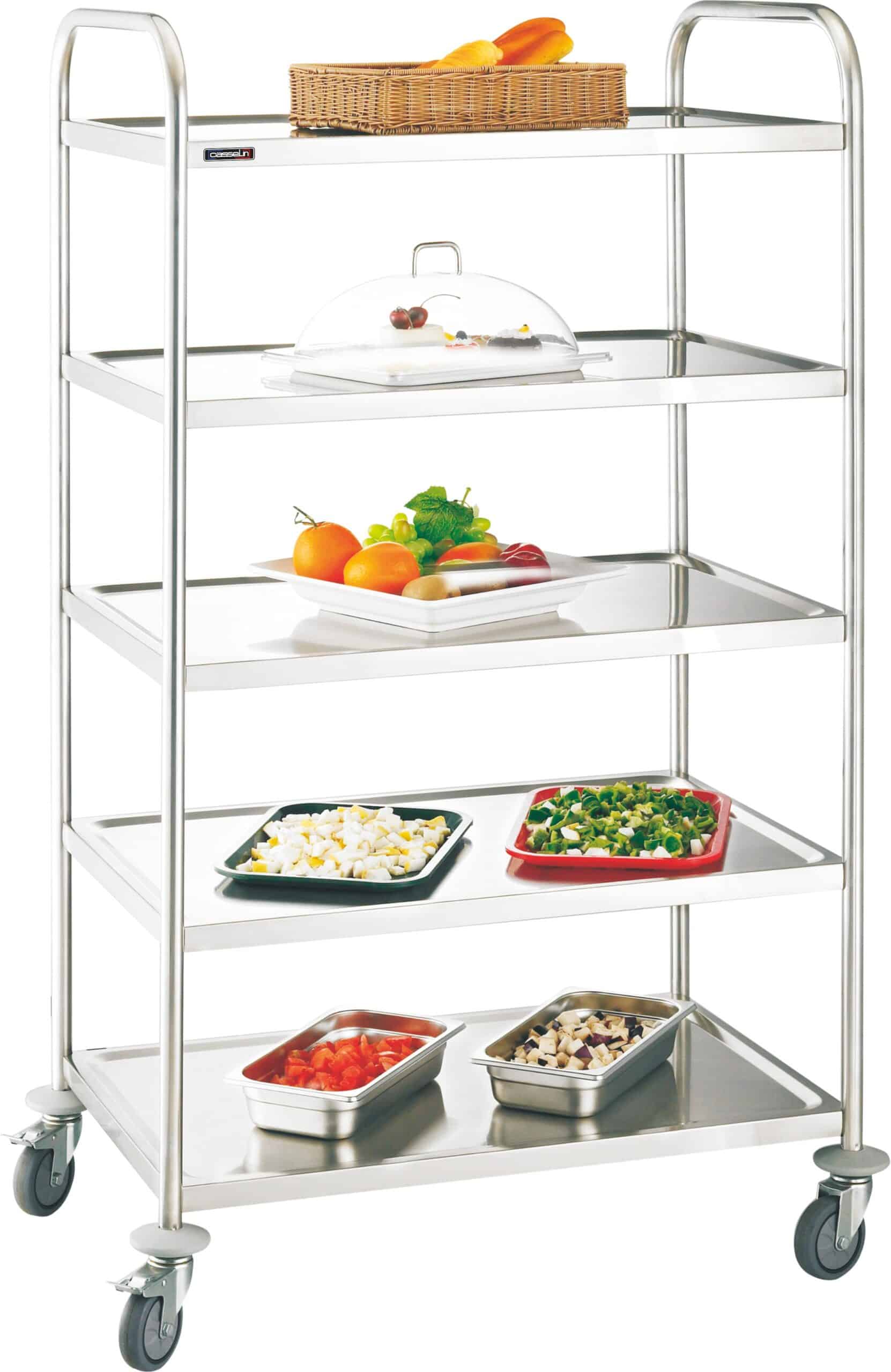 – Rustfrit stål- 4 retningsbestemte hjul, heraf 2 med bremse- Nyttelast: 50 Kg / bakke- Mål på bakkerne: L 830 x D 510 mm- Nyttige mål på bakkerne: L 755 x D 735 mm- Afstand mellem bakkerne : 570 mm- Mål: L 845 x D 528 x H 1.550 mm- Vægt: 21,8 Kg> Nem mon